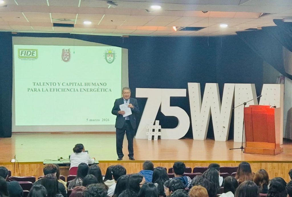 Al presentar la ponencia “Talento y capital humano para la eficiencia energética», en el Centro de Estudios Científicos y Tecnológicos No. 11 “Wilfrido Massieu” del Instituto Politécnico Nacional (IPN), en el marco del “Día Mundial de la Eficiencia Energética”, destacó la importancia de contar con más personal capacitado y especializado para el desarrollo, operación, mantenimiento, optimización, innovación y diseño de nuevas tecnologías, que contribuyan a optimizar el consumo de energía en la industria, el comercio y el sector residencial.